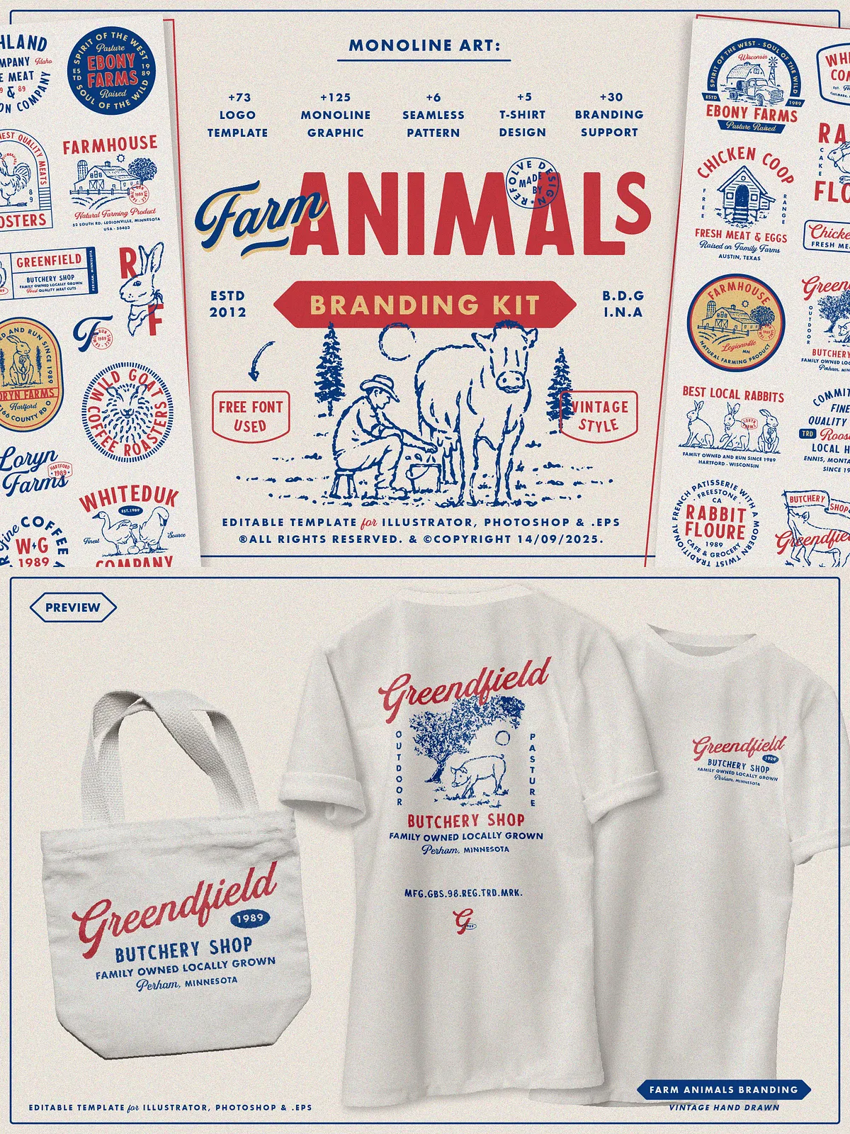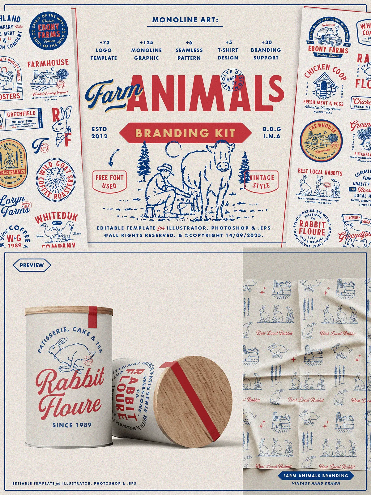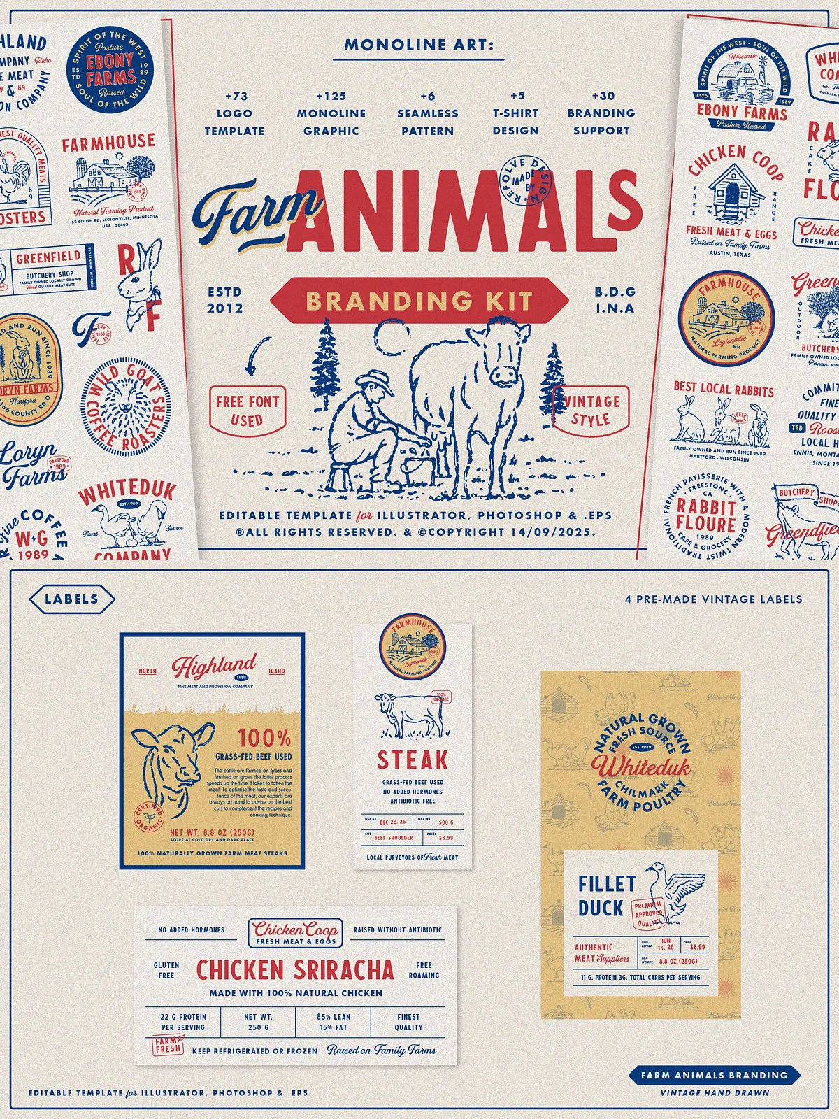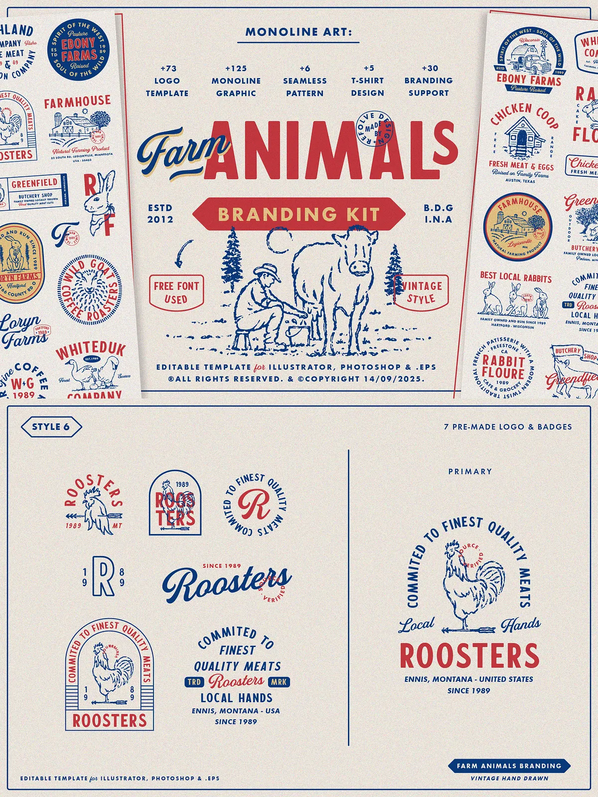 Stop settling for generic, mass-produced logos. The Farm Animals Branding Kit is your ultimate toolkit to create a bold, authentic, and vintage-inspired brand identity that stands out in any market. Inspired by classic stamp designs and raw hand-drawn illustrations, this comprehensive collection is engineered for creative entrepreneurs, small businesses, and design professionals who demand quality, originality, and endless customization options.