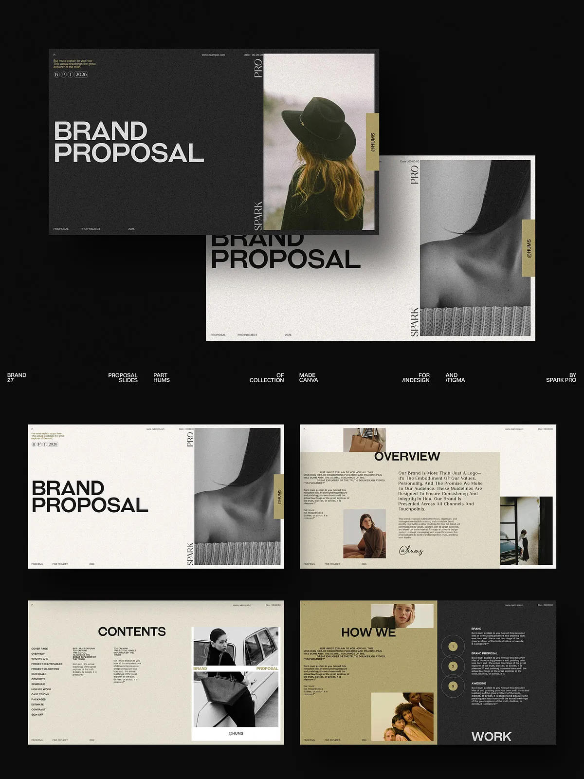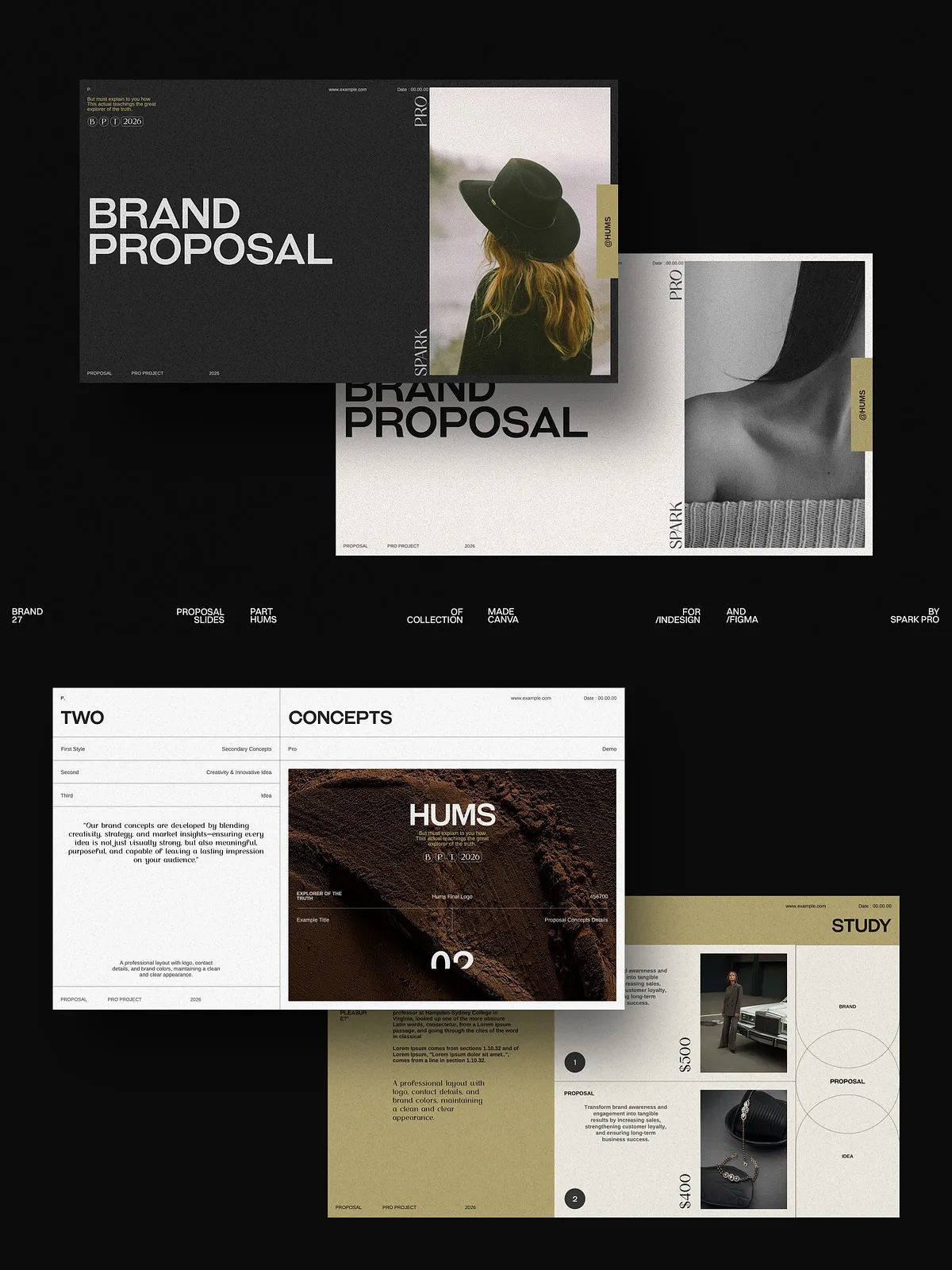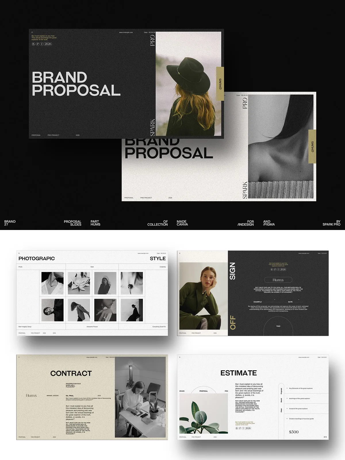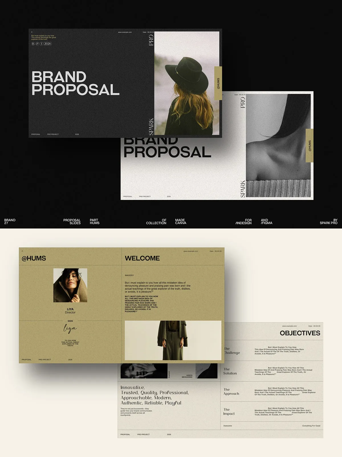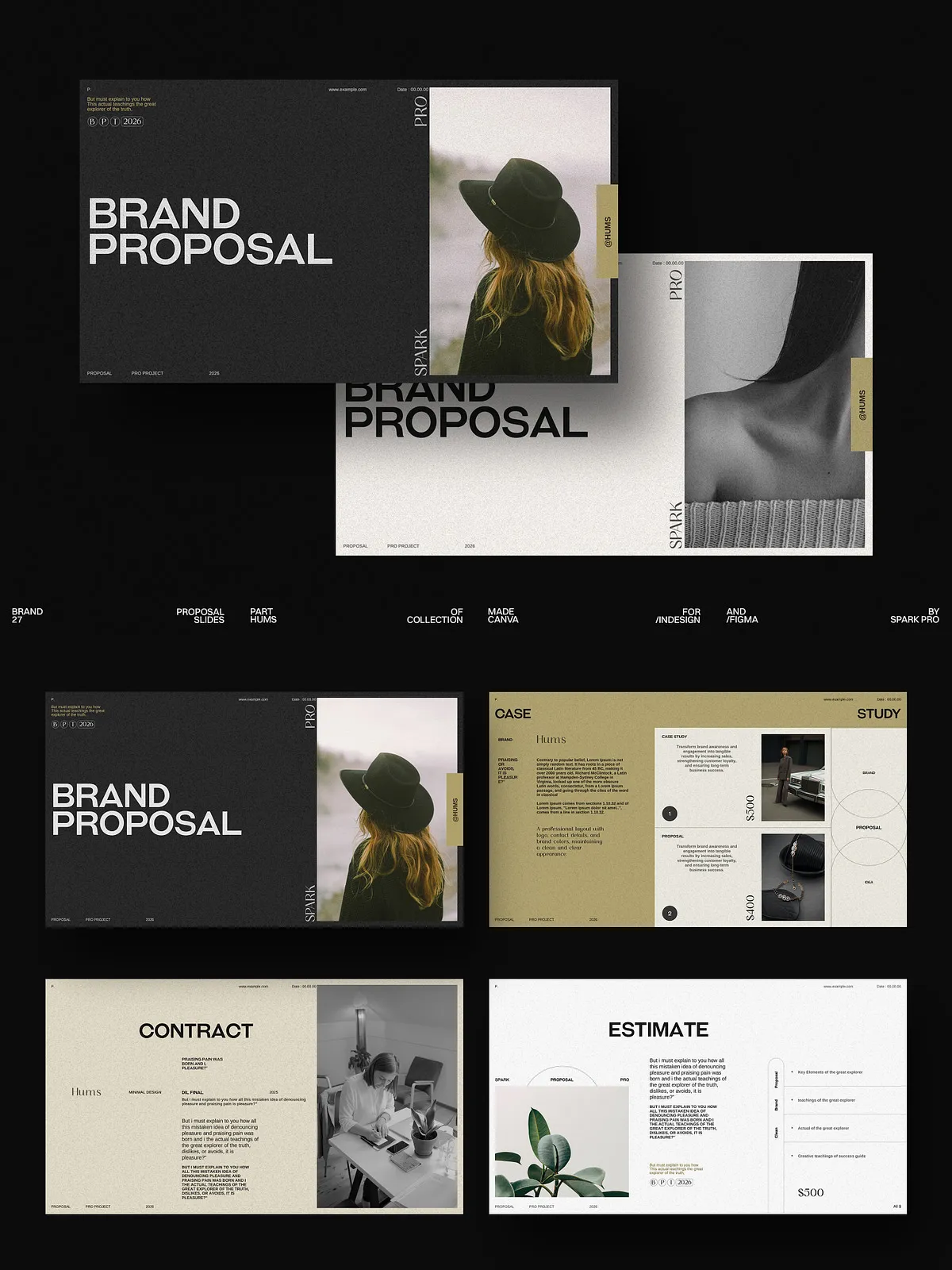 Stop wasting time on generic decks that don’t reflect your brand or creativity. The Hums Brand Proposal template is your strategic weapon for landing high-impact clients. With 27 uniquely designed, fully customizable slides, this professional proposal kit gives you the power to present your vision with confidence, clarity, and style—across every major design platform.
