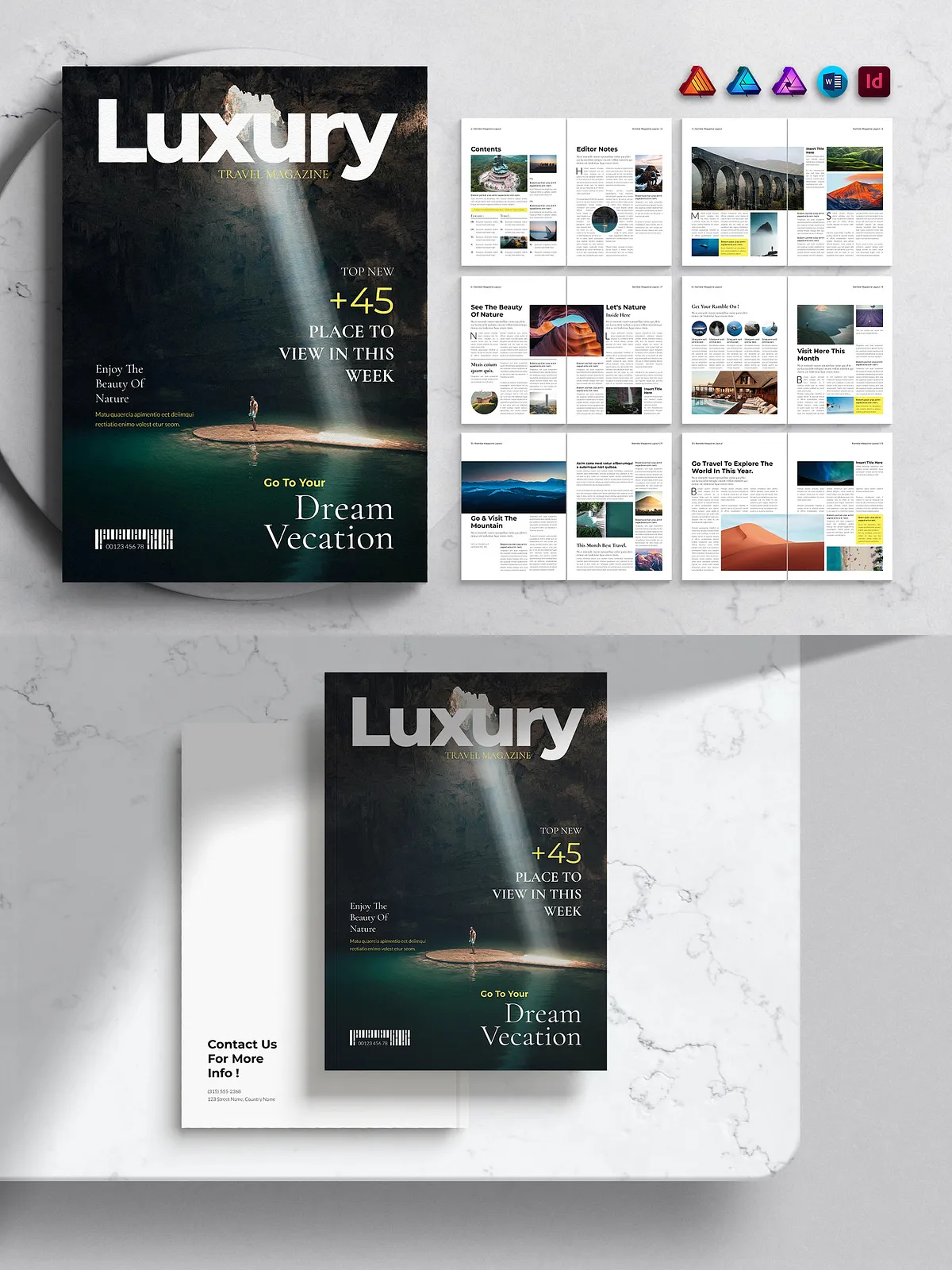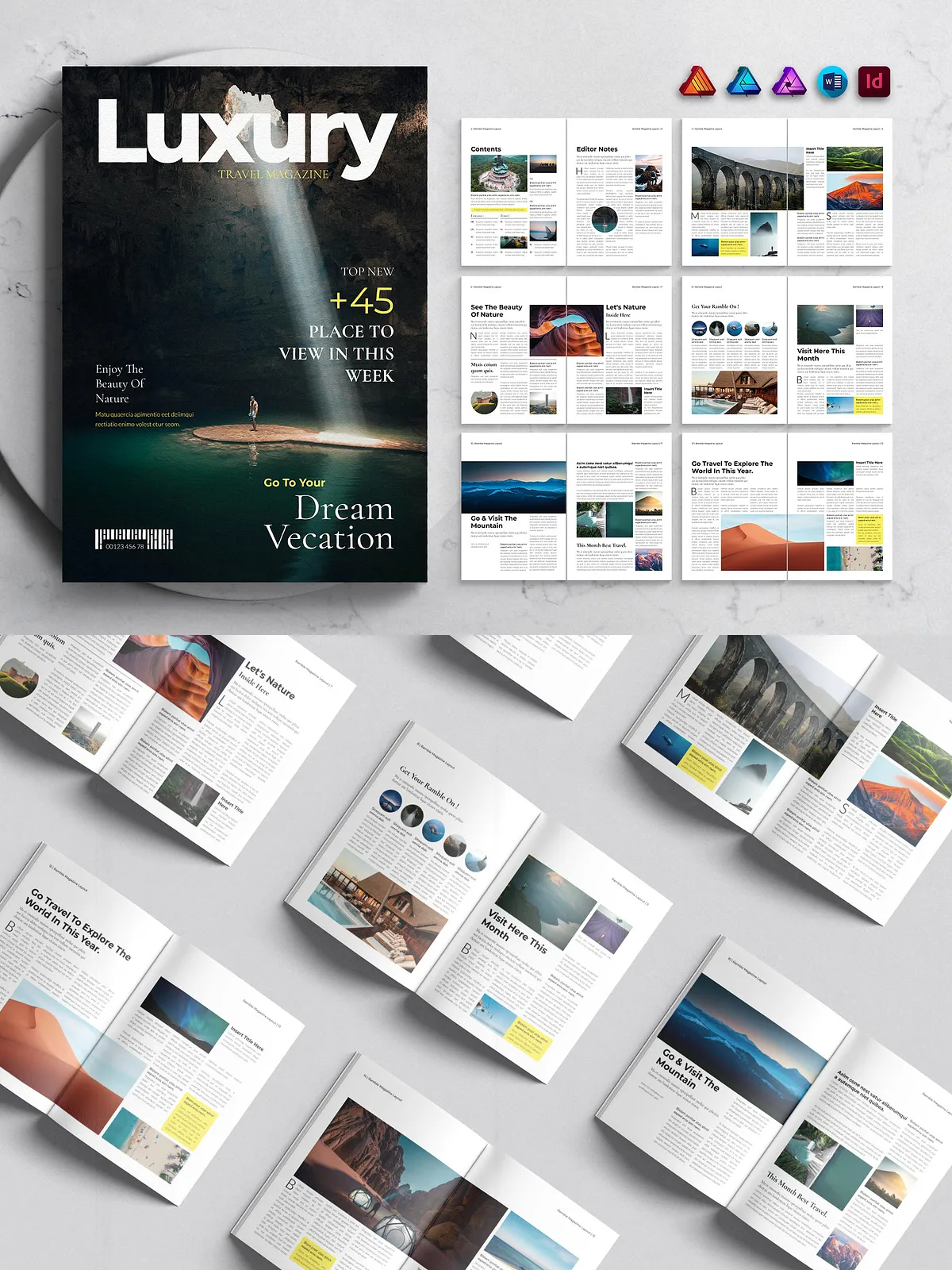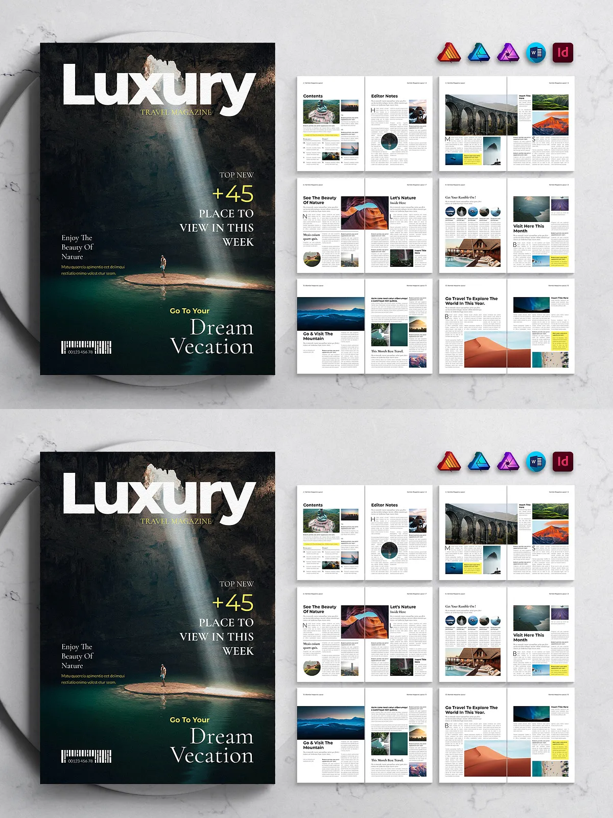 Download today. Customize your first cover in under 10 minutes. Turn your travel vision into a luxury magazine that commands attention—on coffee tables, digital screens, and client presentations alike. Your brand deserves nothing less than perfection.