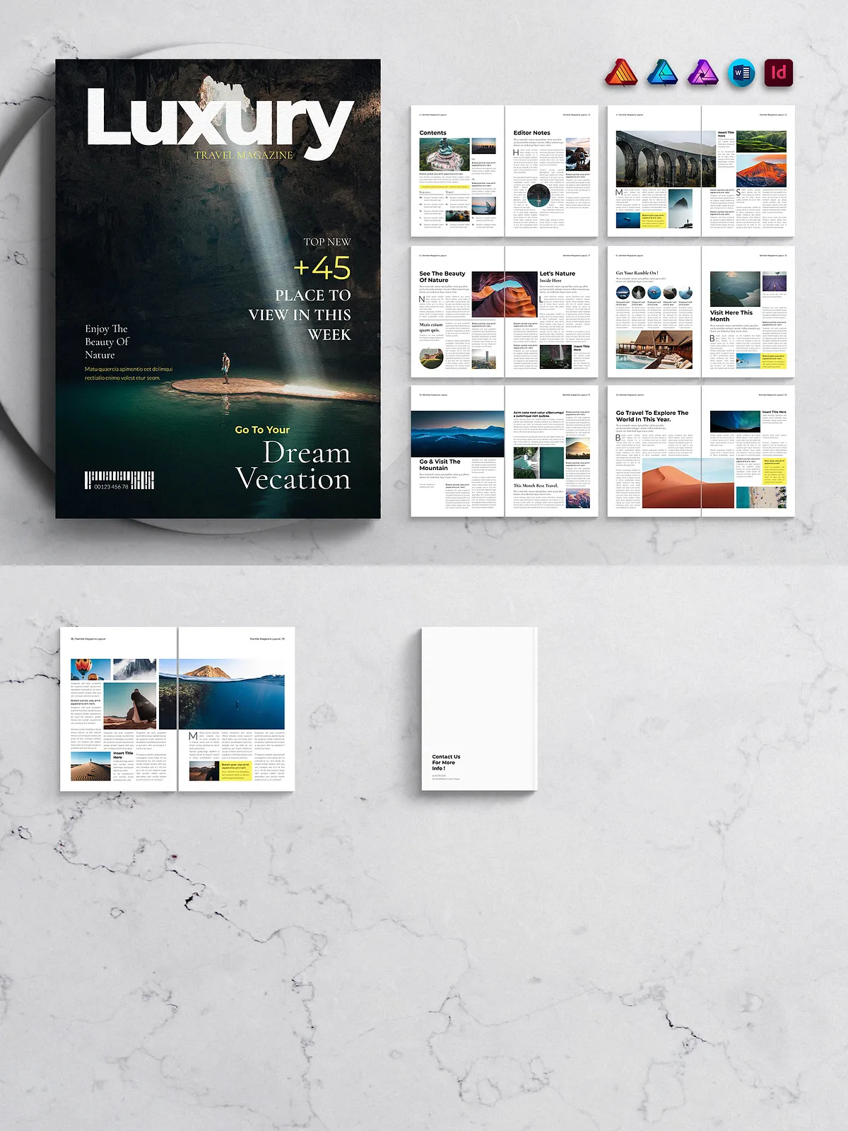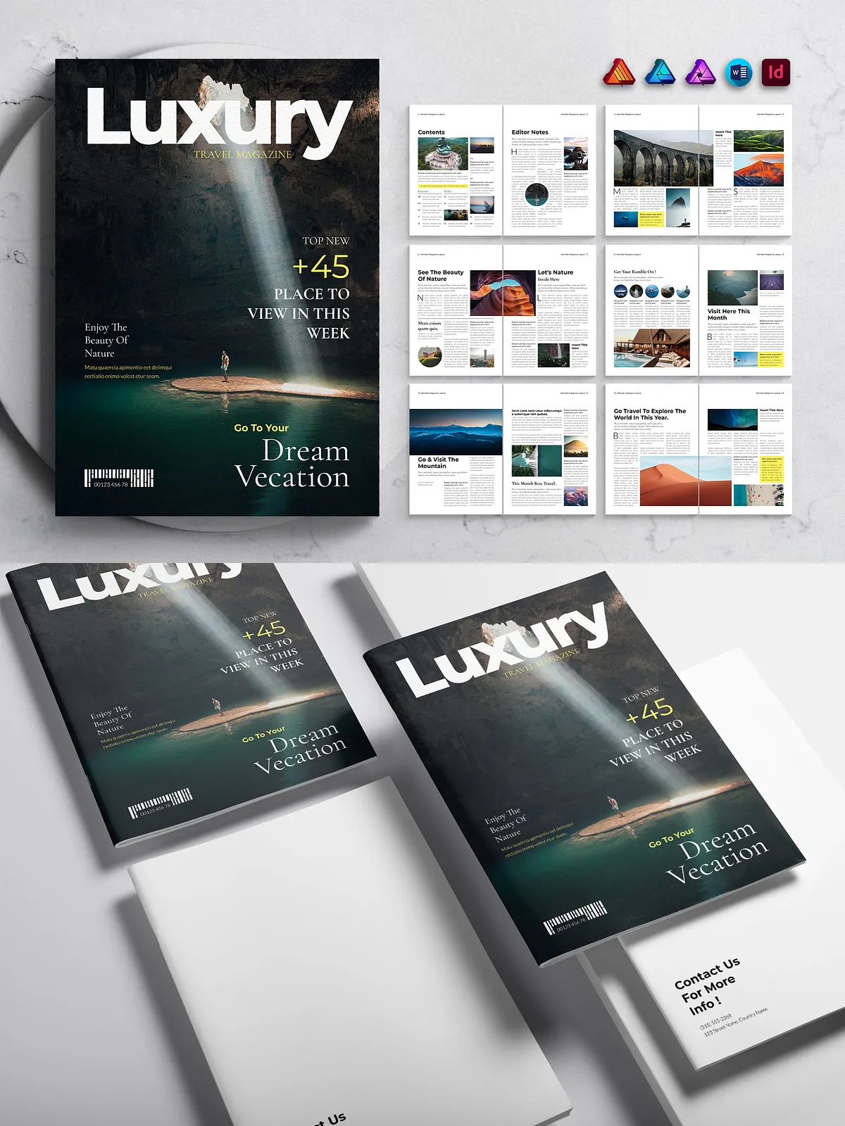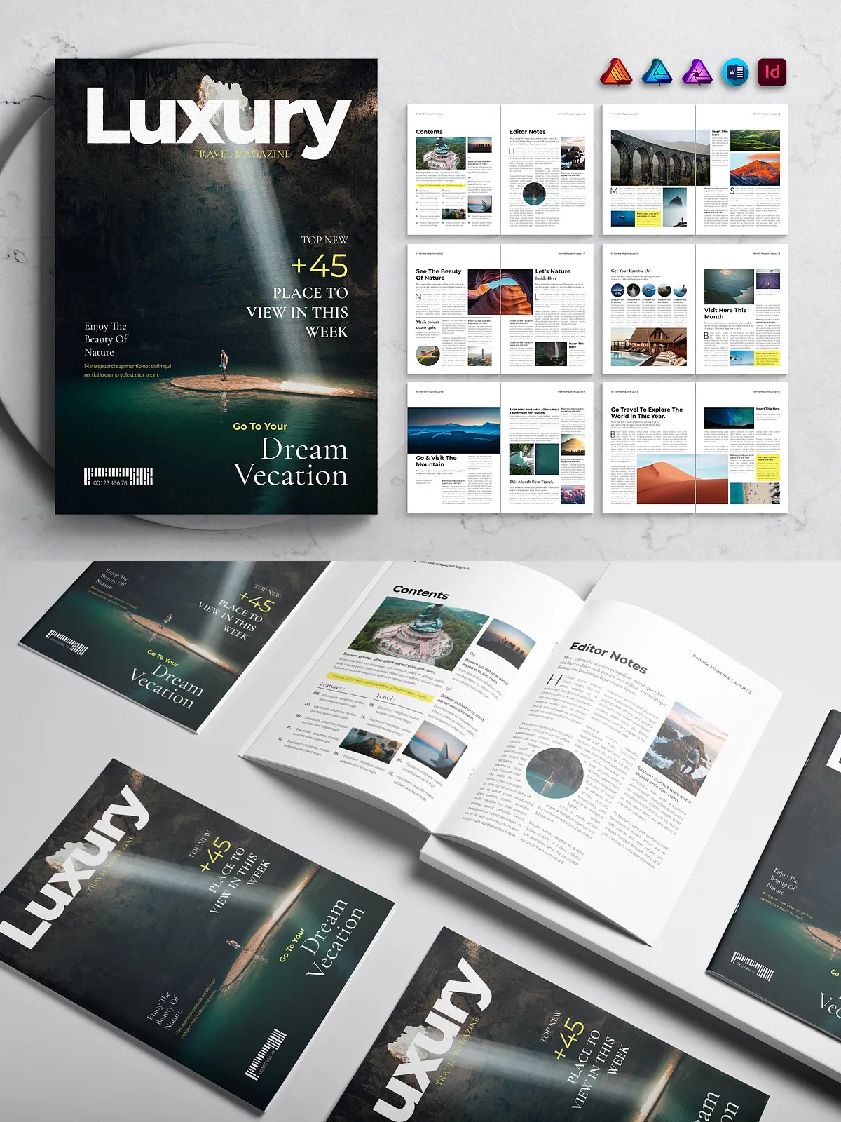 Download today. Customize your first cover in under 10 minutes. Turn your travel vision into a luxury magazine that commands attention—on coffee tables, digital screens, and client presentations alike. Your brand deserves nothing less than perfection.