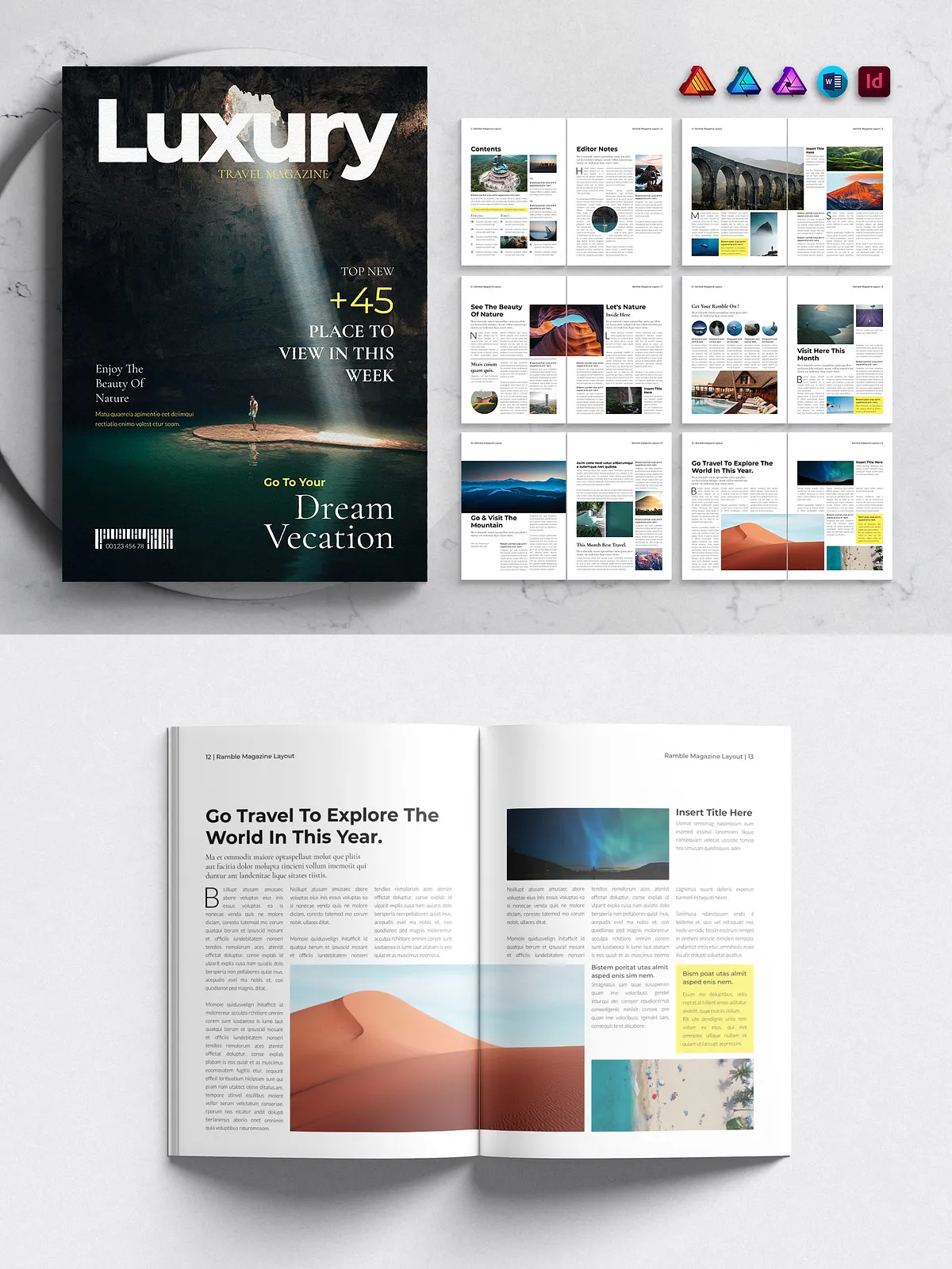 Make every page a statement with this premium Luxury Travel Magazine Template, meticulously crafted for high-end storytelling. Whether you’re crafting a luxury resort brochure, a bespoke travel guide, or a flagship editorial piece, this template delivers editorial excellence with minimal effort. Designed for professionals who value elegance, precision, and performance, it’s built to make your content look polished, powerful, and unforgettable—exactly as a luxury brand deserves.