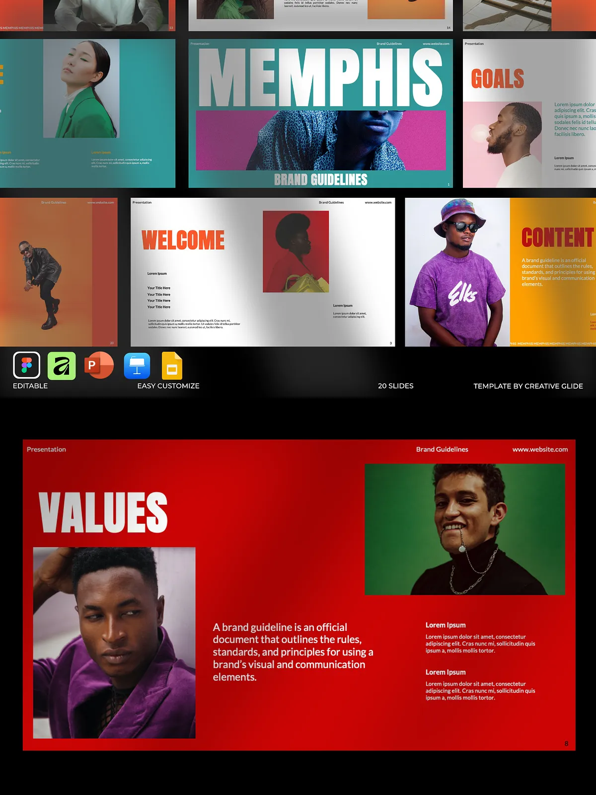 Don’t settle for generic templates that don’t reflect your brand’s uniqueness. With the Memphis Brand Guidelines Presentation, you get a professional, flexible, and powerful tool that grows with your brand.