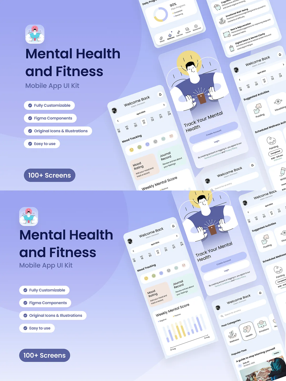 Take your digital wellness journey to the next level with the Mental Health & Fitness App Design UI Kit—a powerful, ready-to-use interface system built from the ground up for holistic well-being. Whether you’re developing a mindfulness platform, a fitness tracker, or a comprehensive health app, this UI Kit delivers a stunning, intuitive, and deeply engaging user experience.