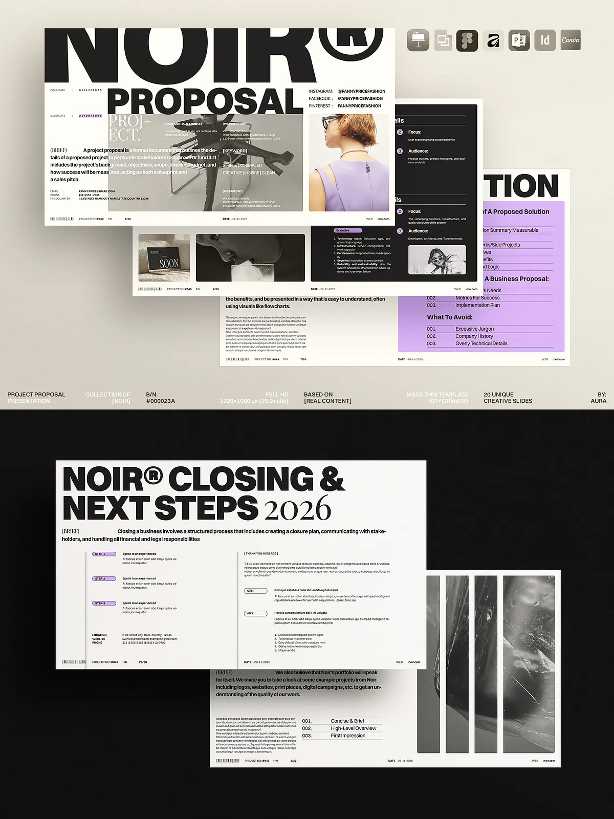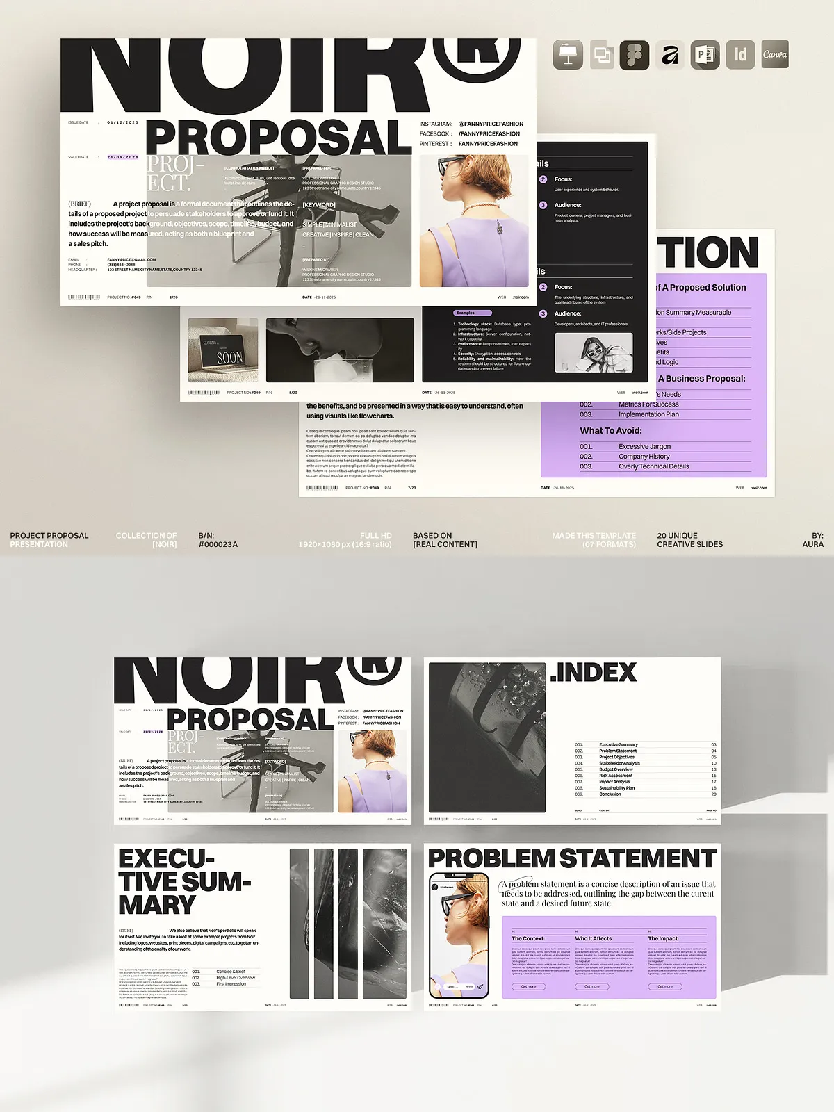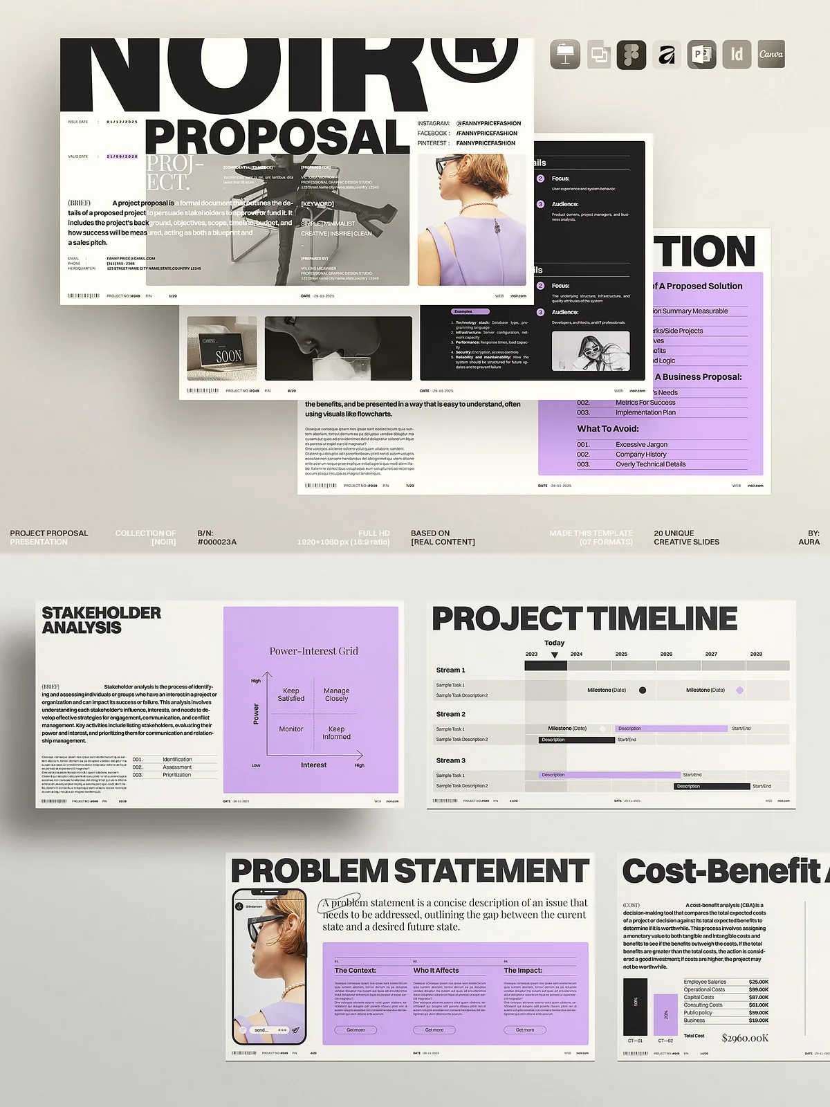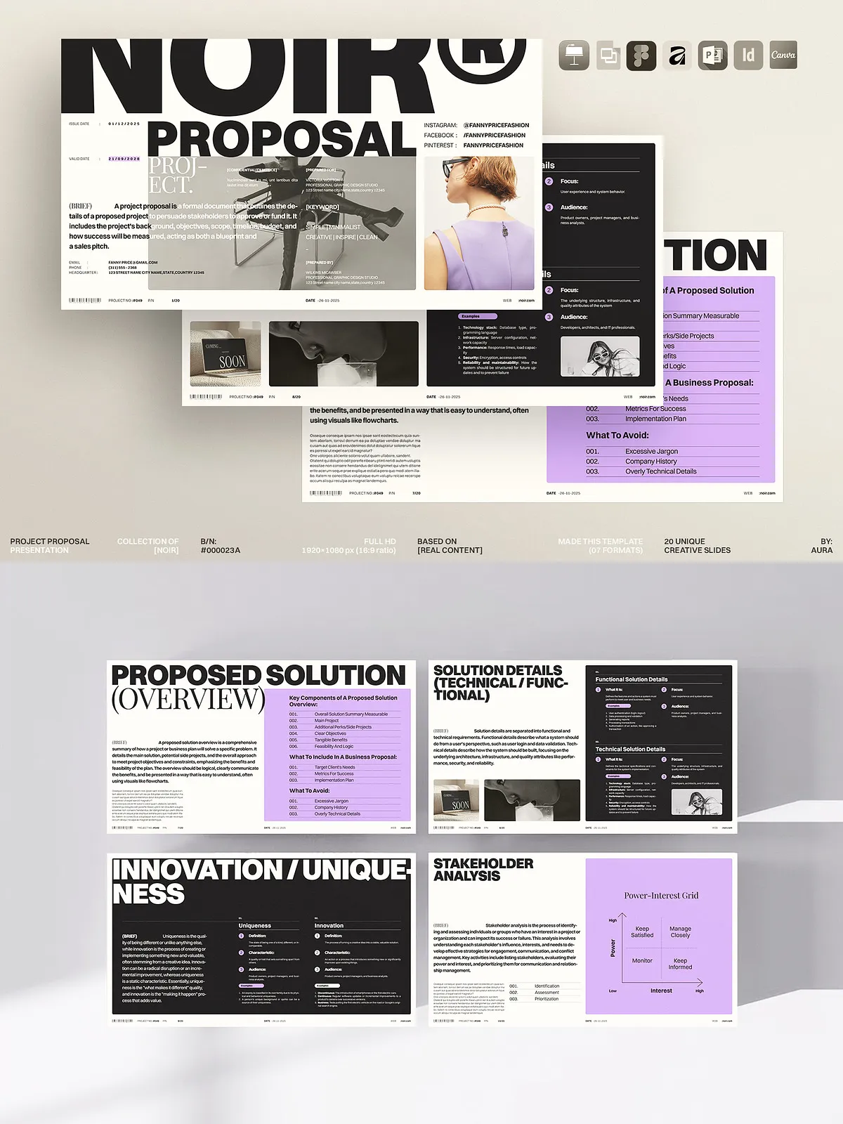 It’s not just about looks—it’s about functionality, flexibility, and results. Each of the 20 layouts is built with purpose and precision to guide your proposal from concept to conversion.