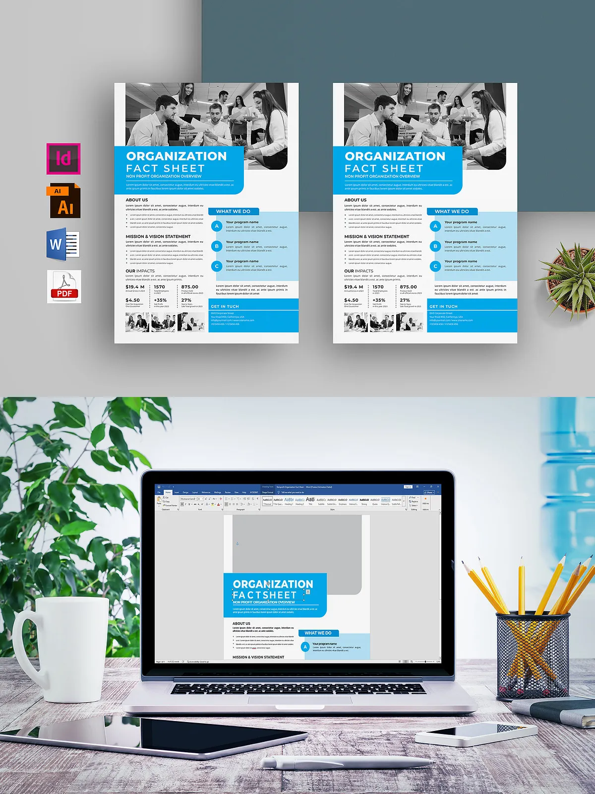 No matter your preferred software, this fact sheet template integrates seamlessly. Fully compatible with industry-standard platforms, you can start editing immediately: