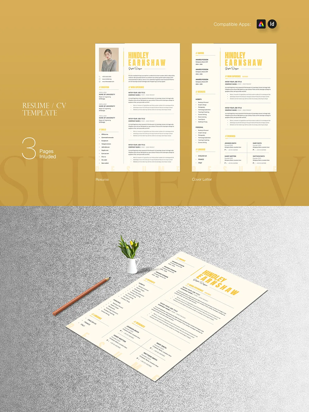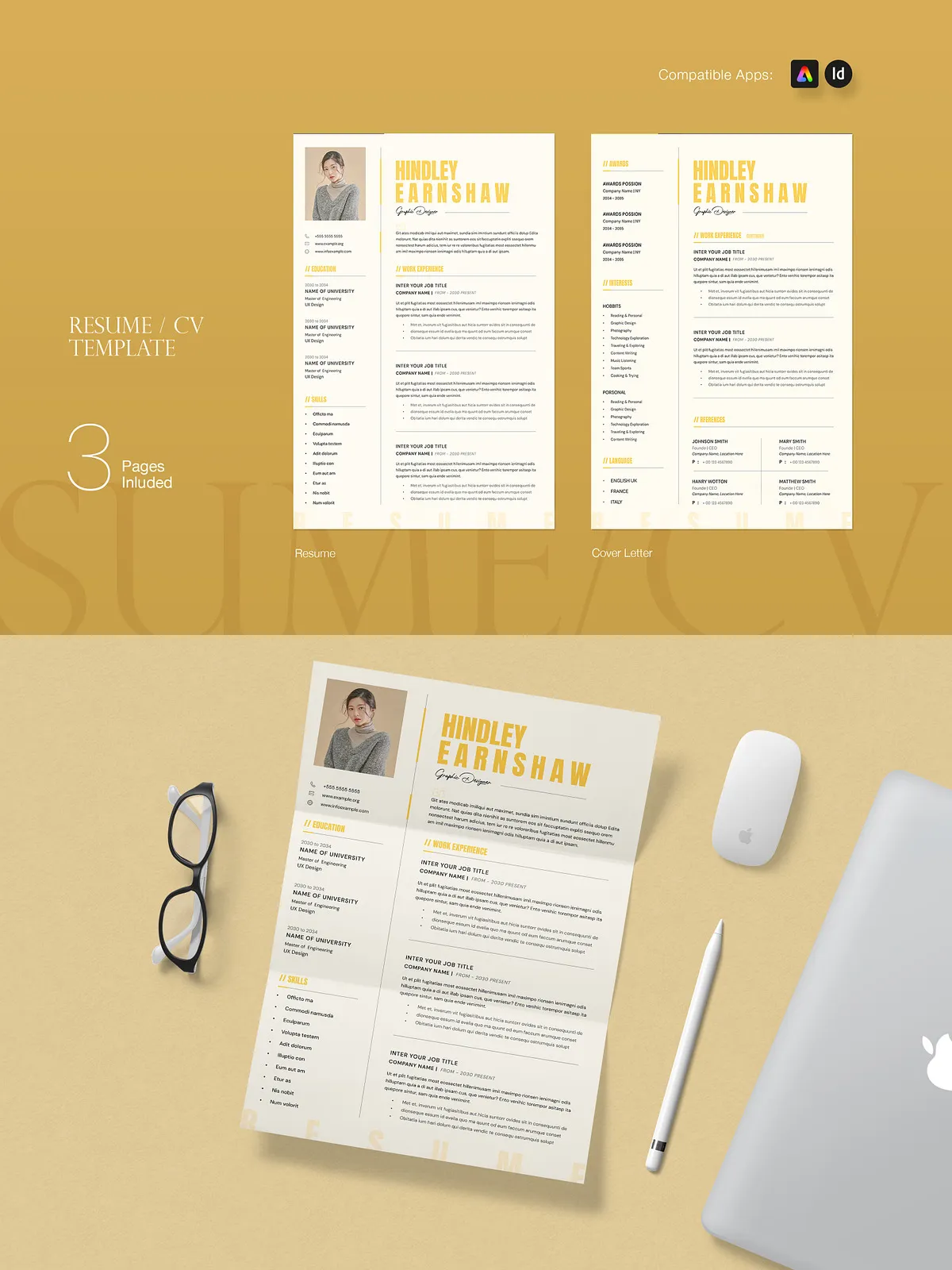 - Compatible with InDesign (INDD & IDML) – Industry-standard format with organized layers, master pages, and live text frames—ideal for professional designers.