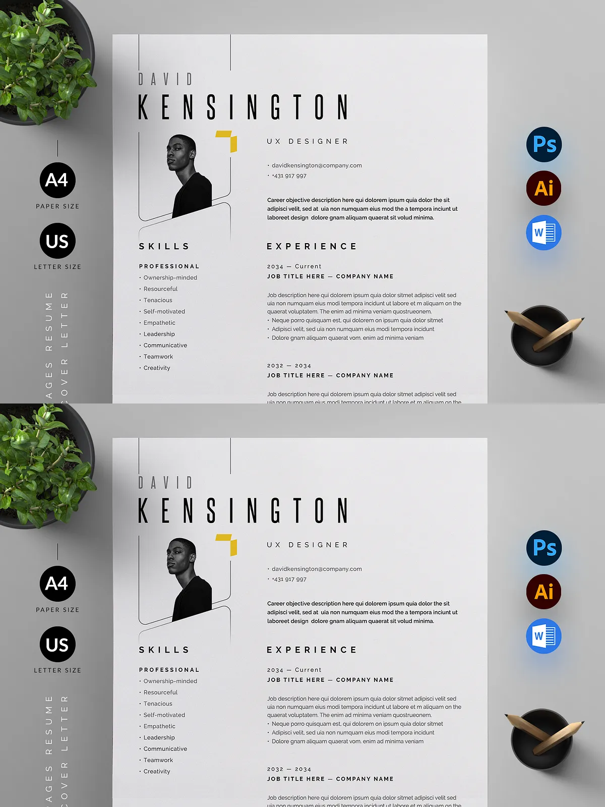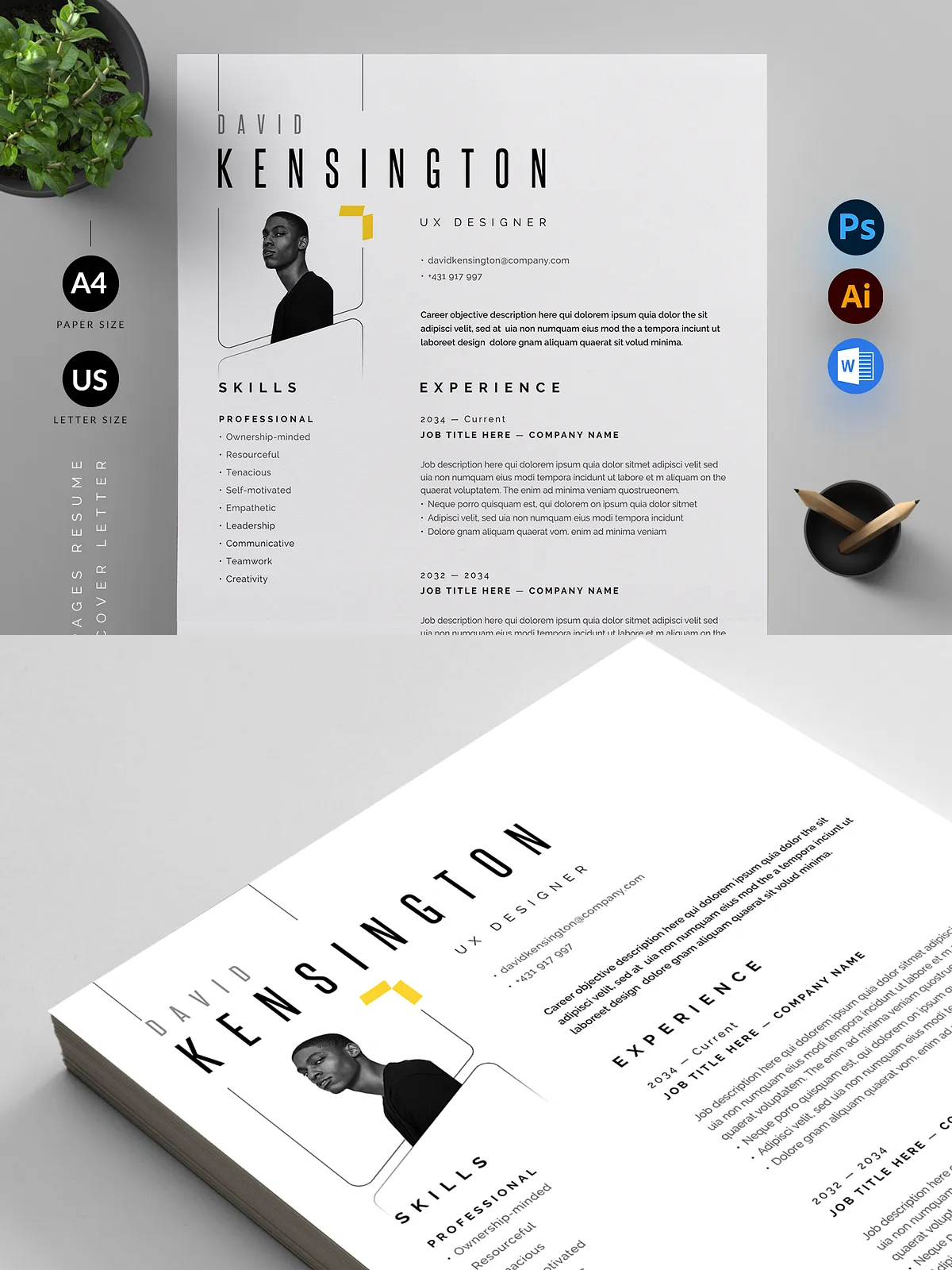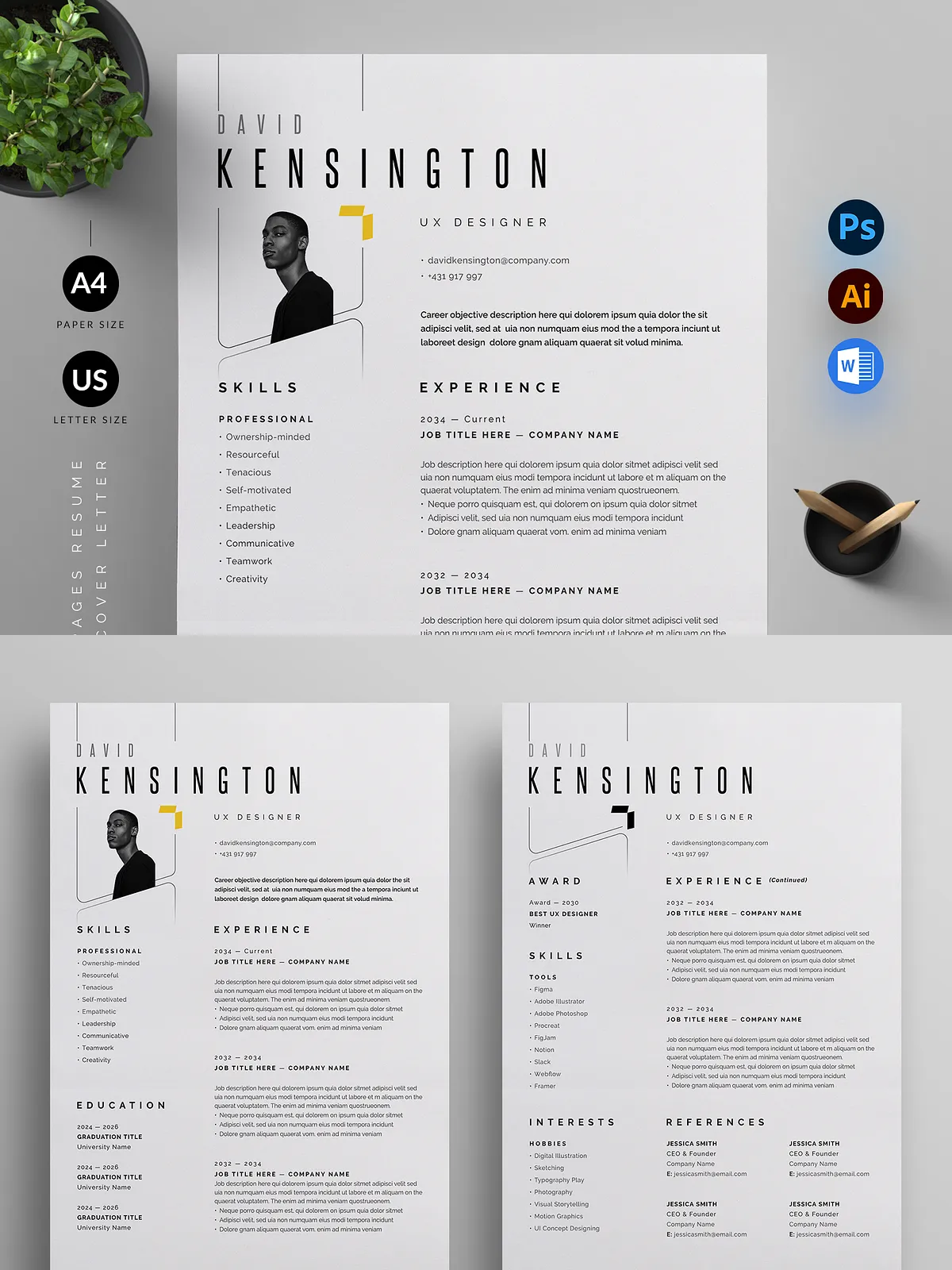 - Full Customizability – Edit every detail in Adobe Photoshop, Adobe Illustrator, or Microsoft Word. Change colors, fonts, add your personal branding, and tailor content to match your career path.