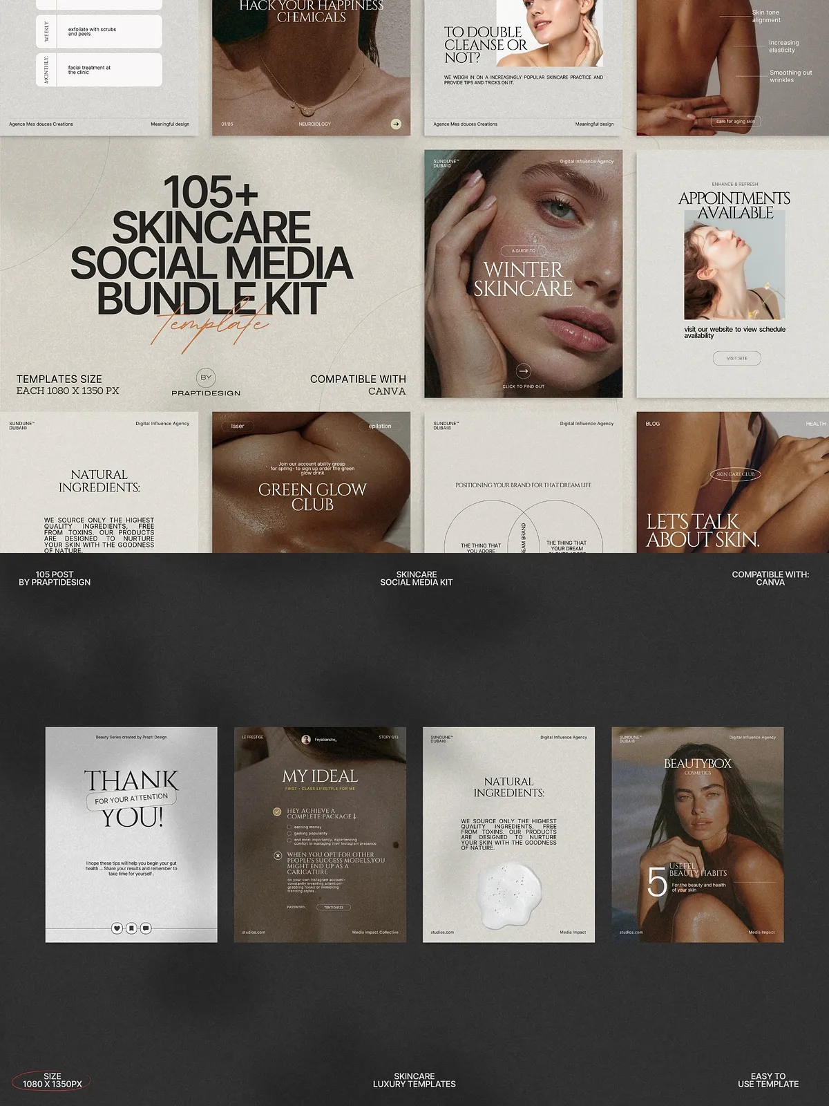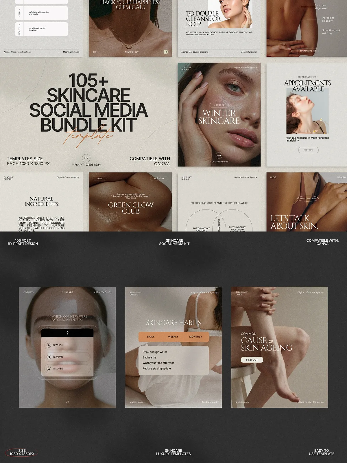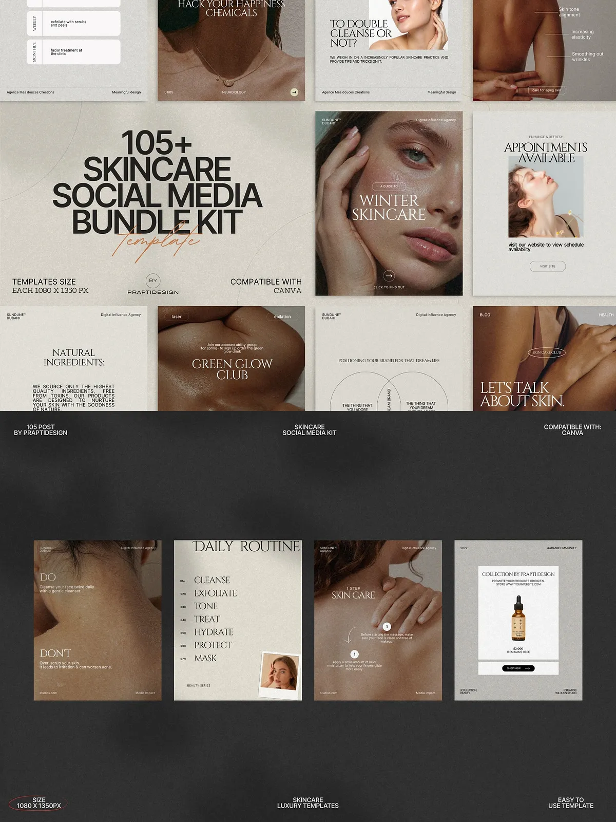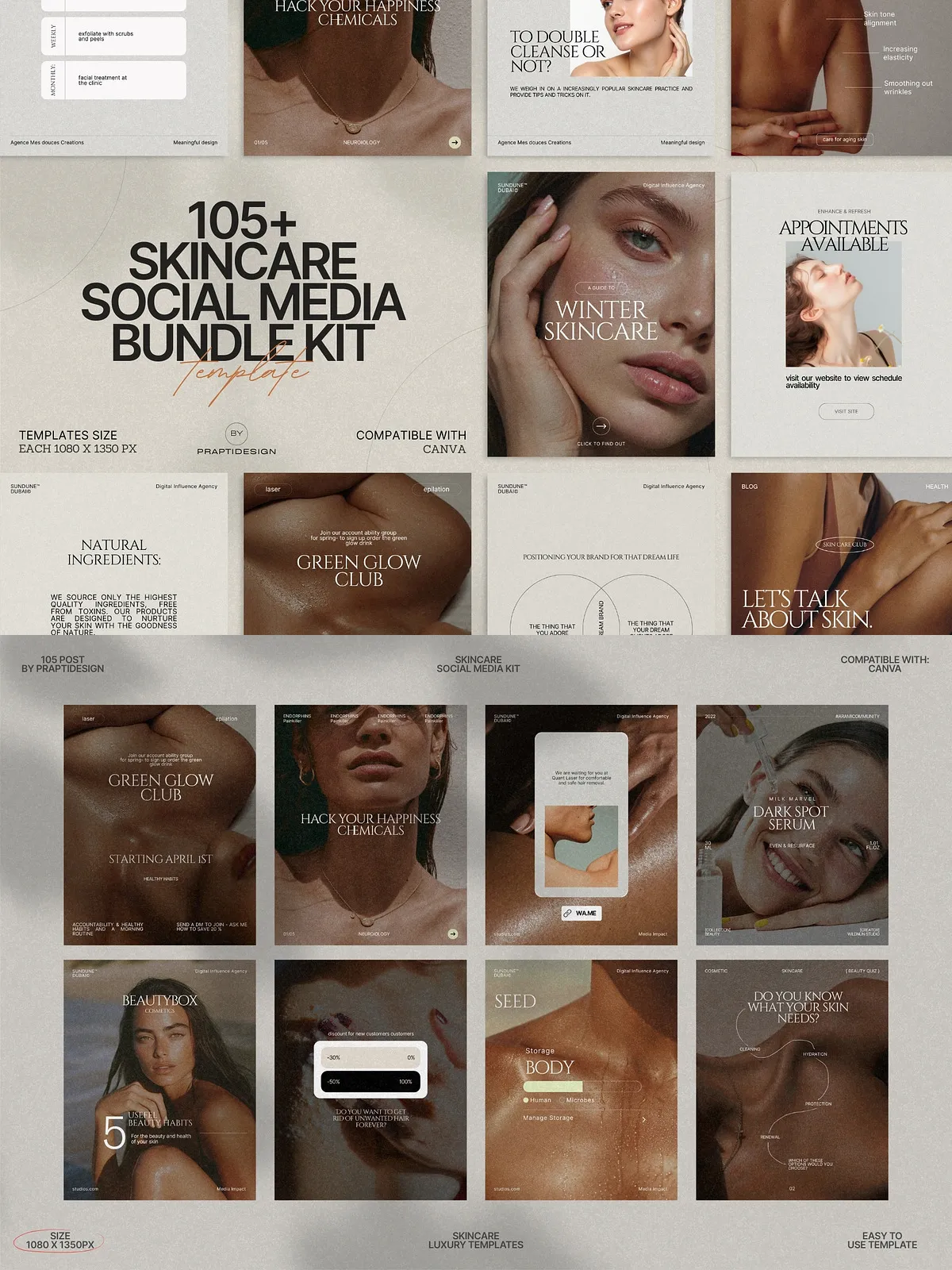 The power of this bundle lies in its simplicity and adaptability. All templates are fully editable in Canva—no design expertise needed. Change text, swap colors to match your brand palette, insert your own photos, or update typography in seconds. Whether you’re managing a personal brand, a small boutique skincare line, or a larger wellness agency, you can maintain consistency across every post with minimal effort.