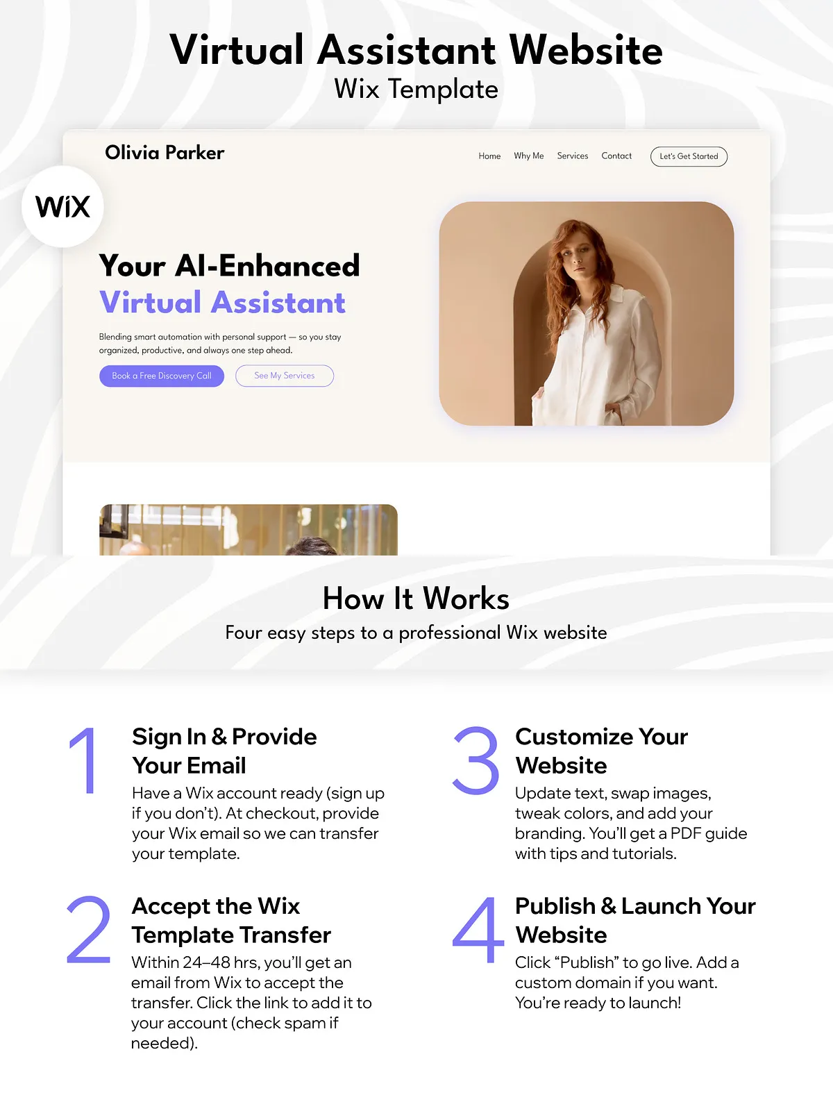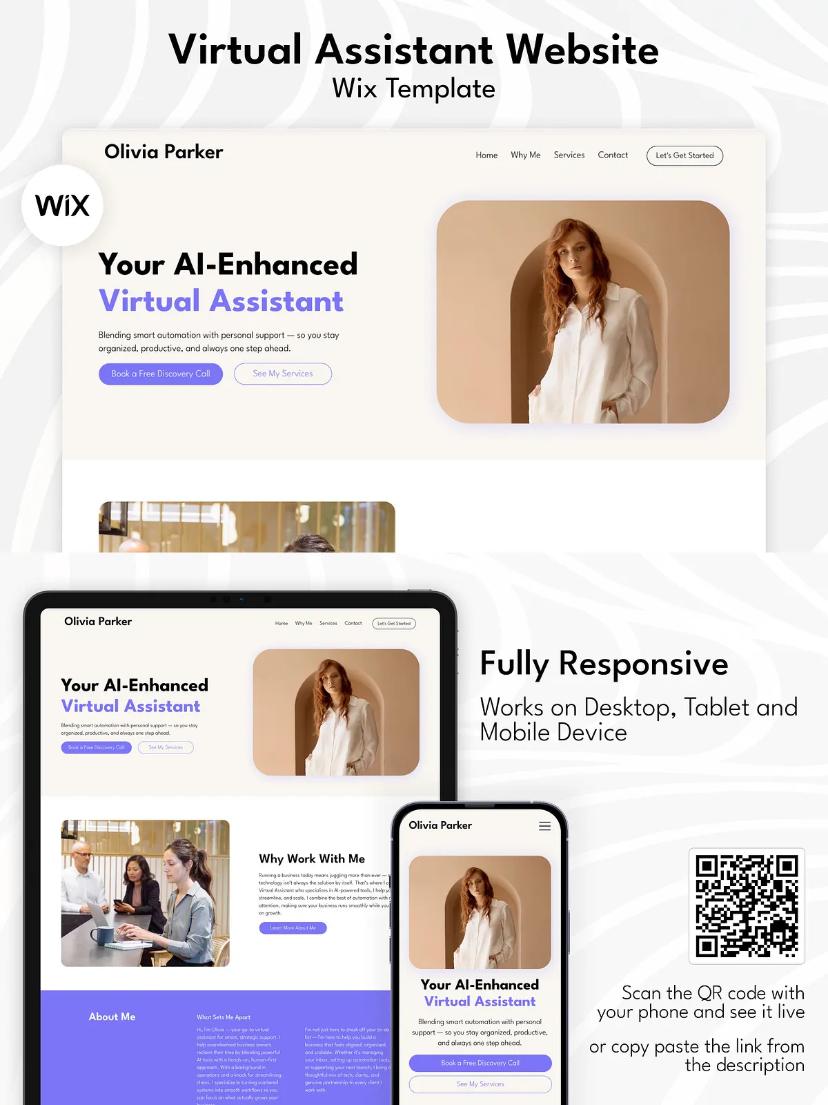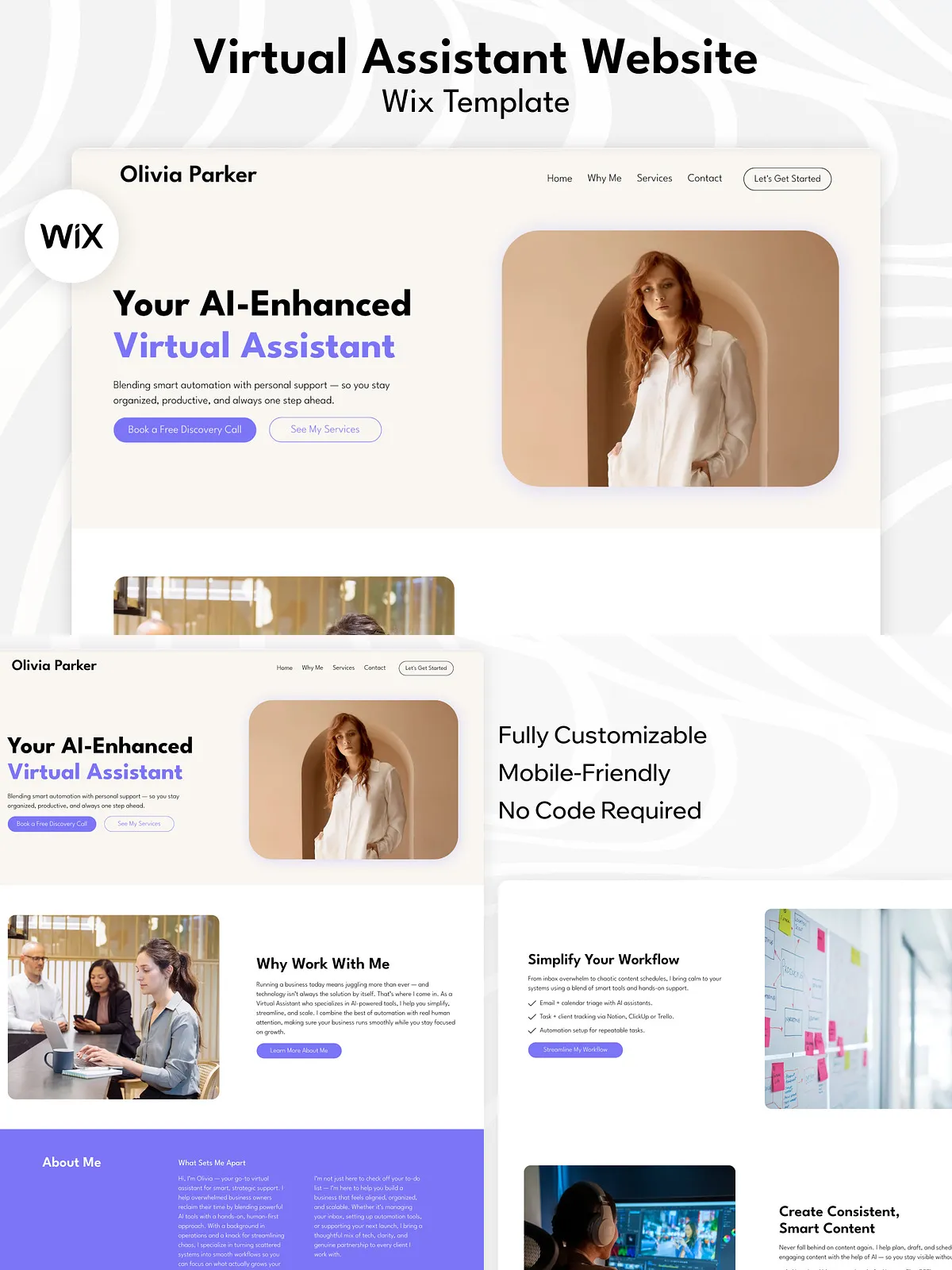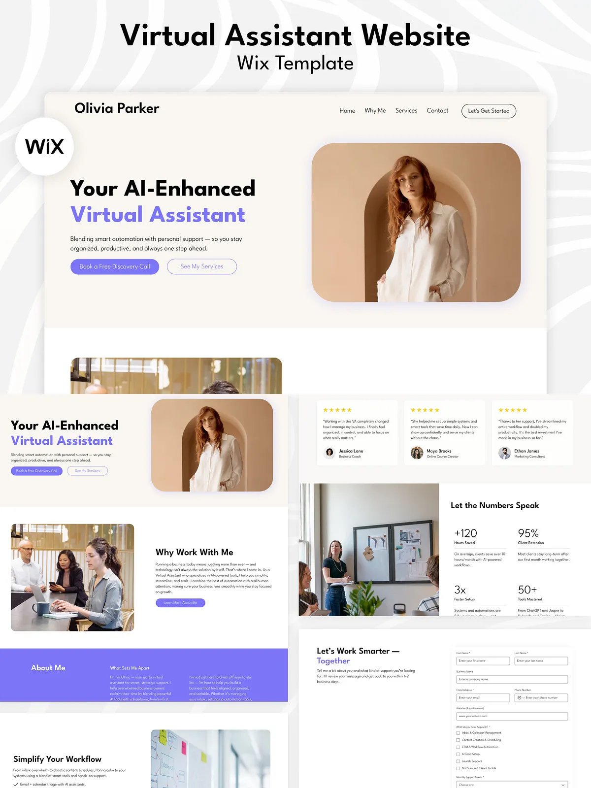 Elevate your business with a stunning, high-converting single-page website that speaks directly to your ideal clients. This professionally crafted AI-Powered Virtual Assistant Wix Studio Website Template is engineered specifically for Virtual Assistants (VAs), Online Business Managers (OBMs), freelancers, and independent service providers who want to command attention, communicate credibility, and convert leads—effortlessly.