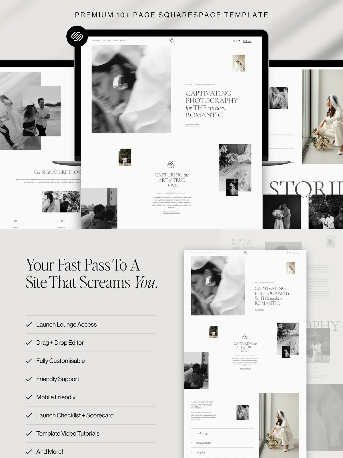 - Includes: Portfolio layouts, services pages, contact forms, Acuity scheduling integration